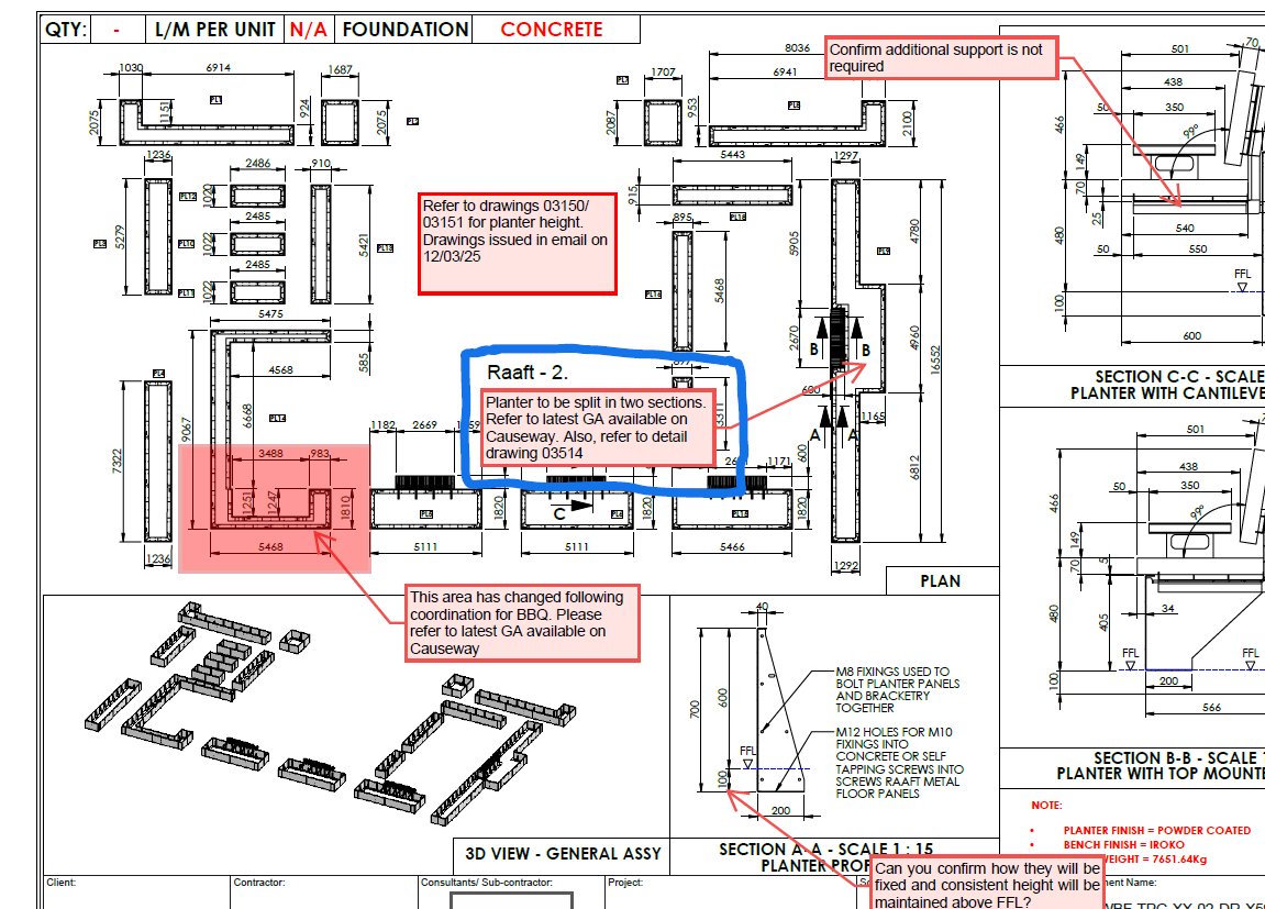 Once the final product had been developed, the fabrication workshop needed details for how it would be assembled. This was then provided alongside a drawing to illustrate how it would be placed on site.