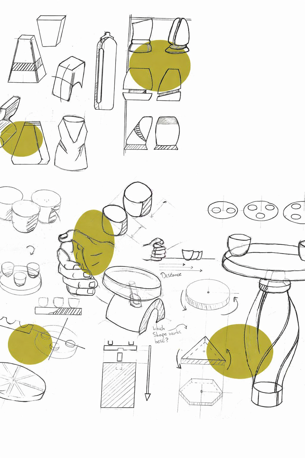 A Toy that centred around spinning and rotation was my starting point. A ‘Tidlywinks’ style game, where the player flicks counters into spinning cups around an axis, became the focus, and concepts were drawn around this.