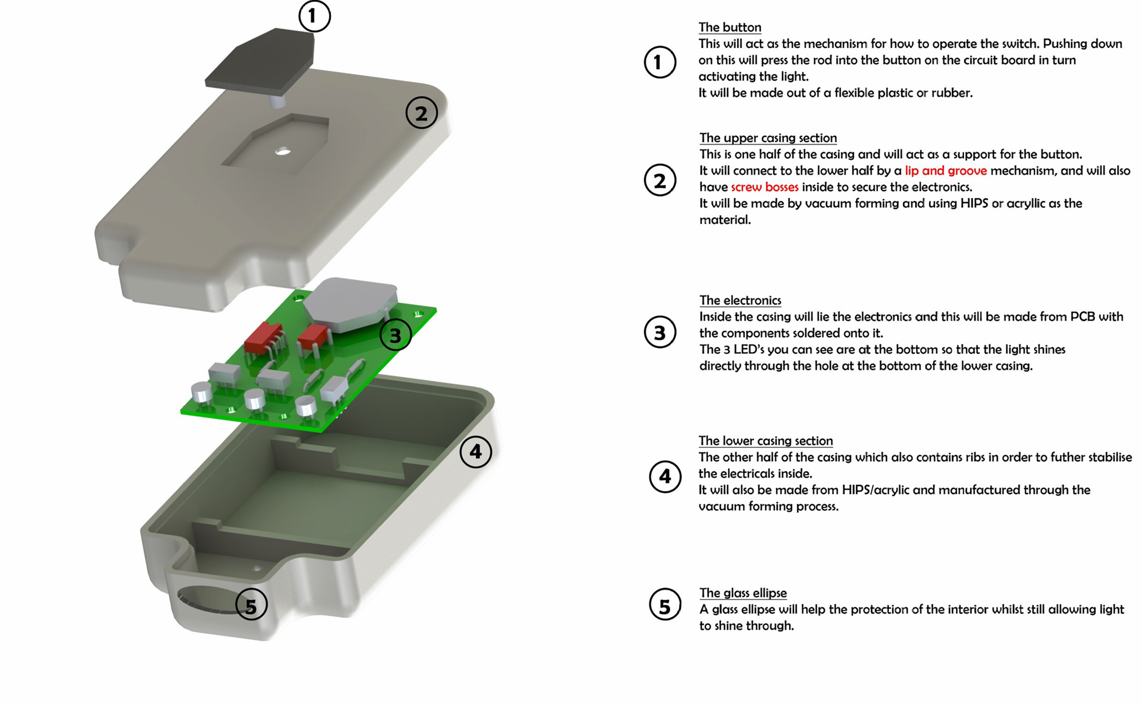 Being able to create a working prototype here was also important, so that the finished product could be reviewed and tested. Lathe Work and soldering, as well as Vaccuum forming and handheld tooling skills, were all tested in this project.