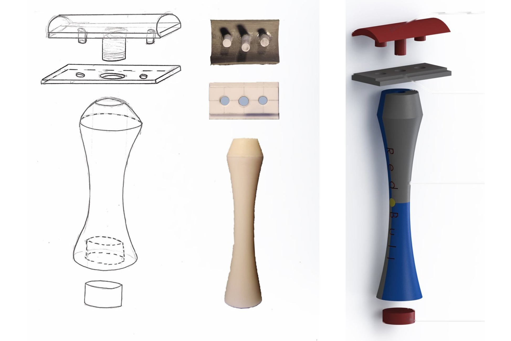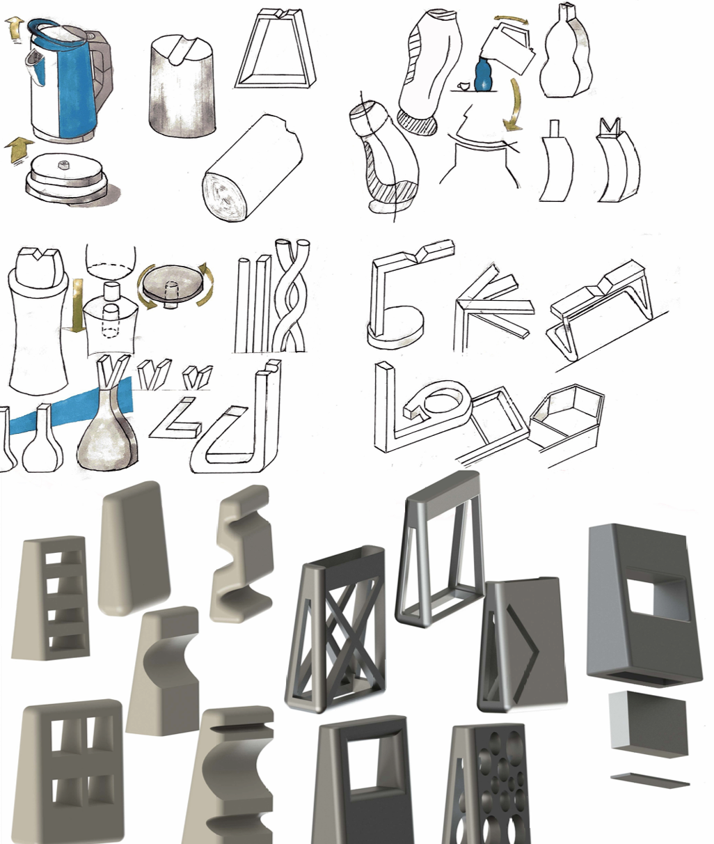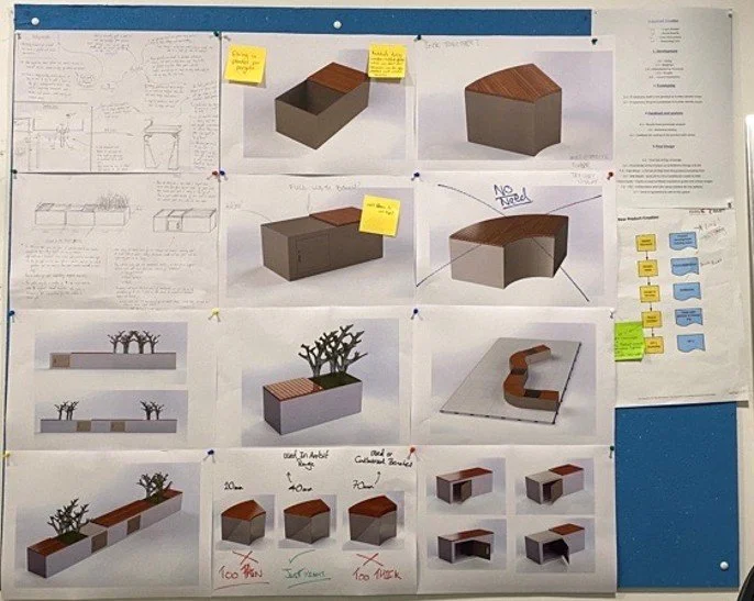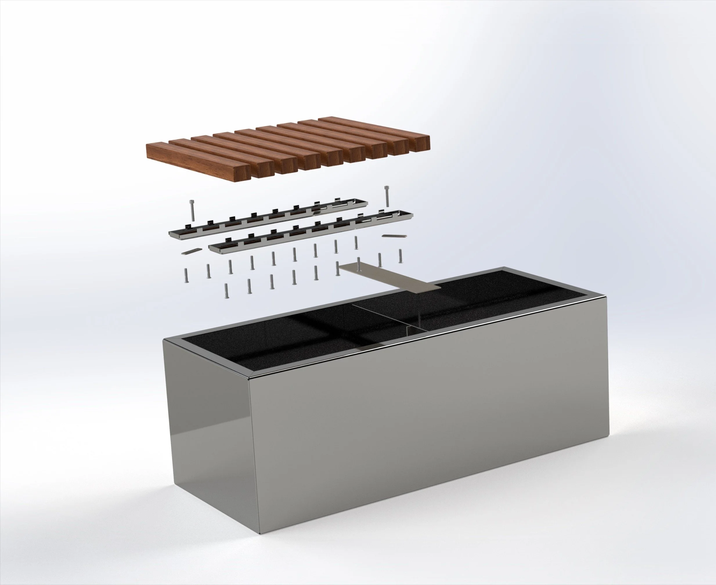 For this process, I heavily used CAD concepts to explore a range of possible shapes and ideas. This also included looking at a wide range of materials, such as various timbers and natural stones. Visuals for how the product would be assembled and attached to the system are also shown.