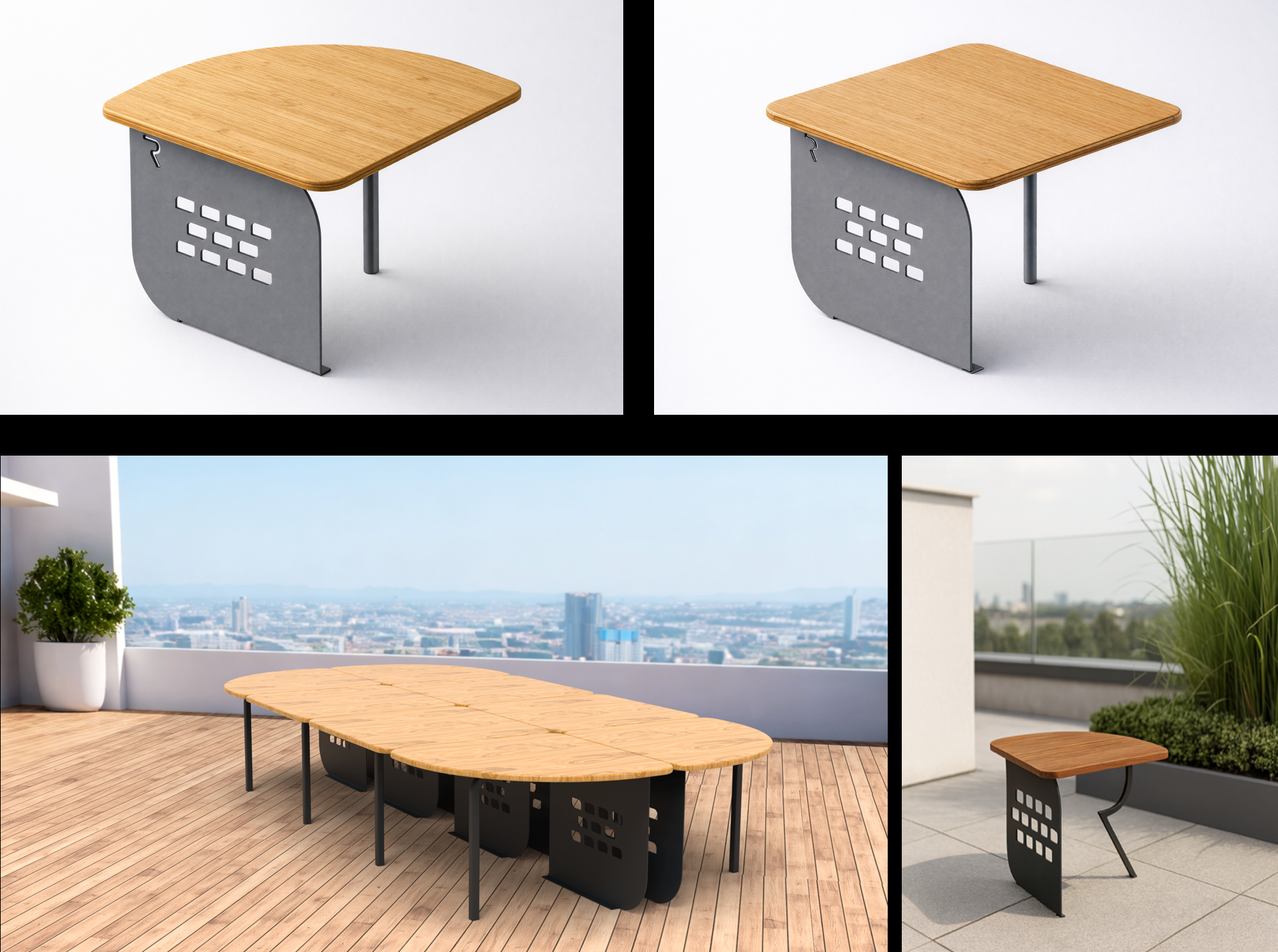 The Products were designed to be made as cost-effectively as possible. This meant using as much on-site manufacturing as possible (Steel sheet bending and Welding). The timber assembly and brackets would be done at the local timber supplier due to FSC compliance, and powder coating was carried out off-site.
