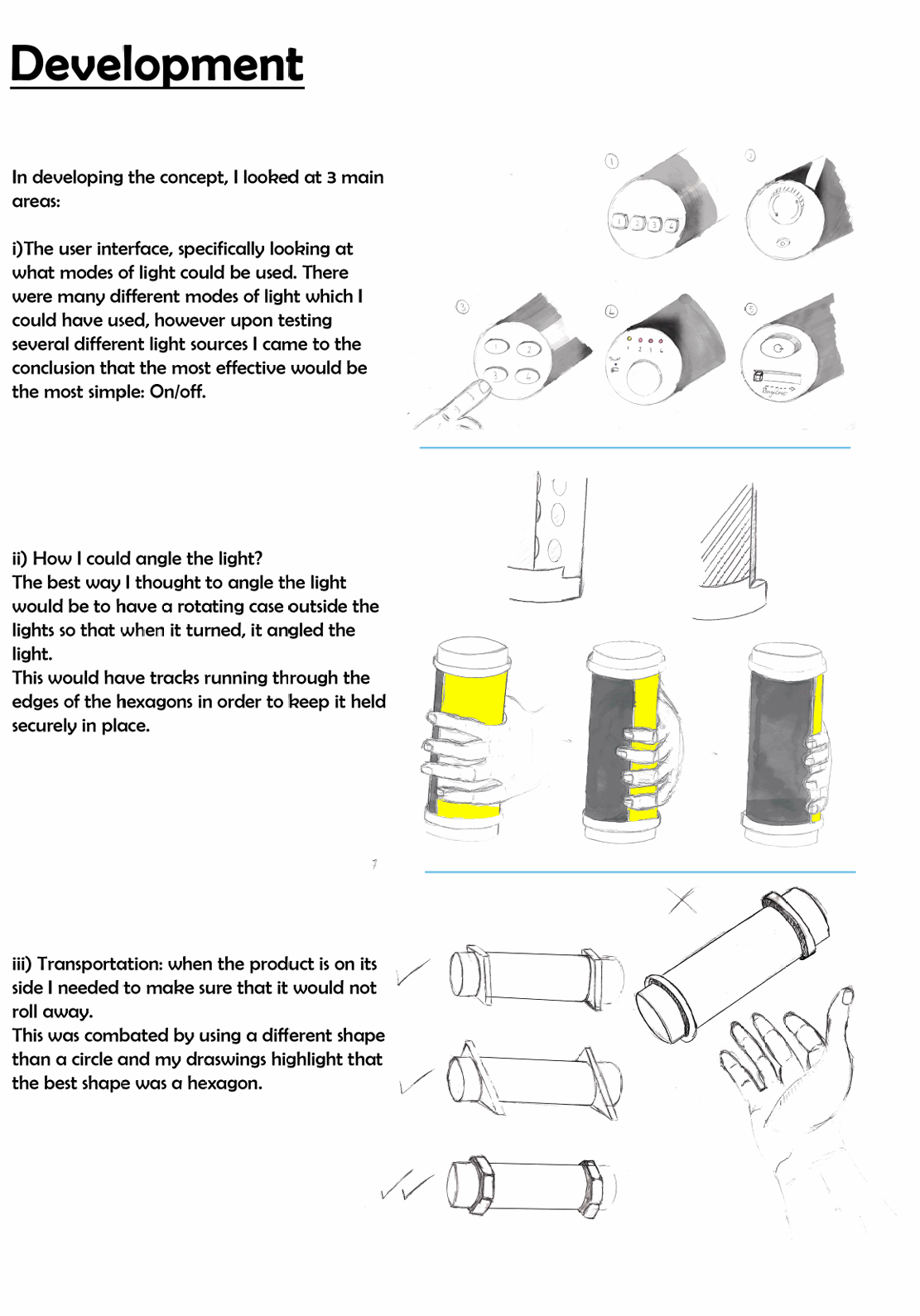 Illuminating a keyhole so that keys could be found in the dark was the concept, and so I began by sketching, then reviewing the details for how the product would look.